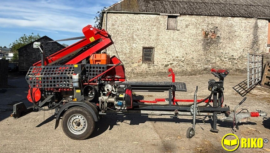 2014 model but exceptionally tidy. May 2024 fitted new GX630 electric start engine, hydraulic in-feed roller and two bank valve for log / timber deck fitted. Comes with timber lift, three splitting knives: 2/4 way + 6 way + 8-way and Includes 2 lever splitting kit so you can drop rings into the splitting chamber and operate the splitter from next to the chamber. Advertising on behalf of owner who recently purchased a large horizontal splitter + saw bench with conveyor from Riko as all his timber is no longer suitable for firewood processors.